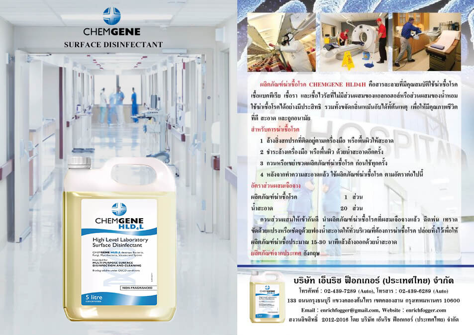 คือ สารละลายที่มีคุณสมบัติใช้ฆ่าเชื้อโรค น้ำยาฆ่าเชื้อโรค CHEMGENE HLD4L น้ำยาหัวเชื้อสูตรเข้มข้นพิเศษ ผลิตและนำเข้าจากประเทศอังกฤษ เกรด bio ปลอดถัยต่อผู้คน มีคุณสมบัติใช้ฆ่าเชื้อโรค ไวรัสได้หลายชนิด เชื้อแบคทีเรีย เชื้อรา เชื้อไวรัส ใช้ฆ่าเชื้อโรคได้อย่างมีประสิทธิ รวมทั้งขจัดกลิ่นเหม็นอับภายในห้องได้ทันที เพื่อให้มีคุณภาพชีวิตที่ดี สะอาด และถูกหลักอนามัย และ สาธารณ์สุข ใช้กันอย่างแพร่หลายในสายการบินนานาชาติ โรงพยาบาล โรงเรียน รัฐสภา ทำเนียบรัฐบาล