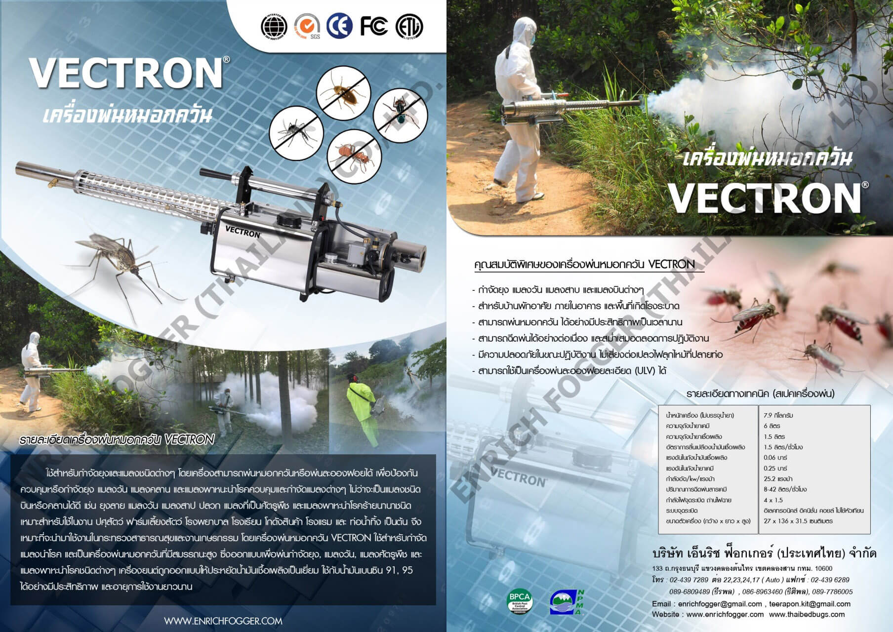 เครื่องพ่นหมอกควัน VECTRON TF-35 เครื่องพ่นละอองฝอย กำจัดยุง แมลงวัน แมลงคลาน แมลงศัตรูพืช น้ำหนักเบาและทนทาน ตัวเครื่องมีความแข็งแรงทนทานใช้ได้นับ 10 ปี เพื่อป้องกัน ควบคุม หรือกำจัดยุง แมลงวัน แมลงคลาน แมลงศัตรูพืช และแมลงพาหะนำโรคร้ายนานาชนิดในพื้นที่เกษตรกรรม ป่าไม้ สวนผักผลไม้ ไร่นา และในสถานที่ต่าง ๆ เช่น ปศุสัตว์ ฟาร์มสัตว์เลี้ยง โรงพยาบาล โรงเรียน โกดังสินค้า โรงแรม ท่อน้ำทิ้ง เป็นต้น