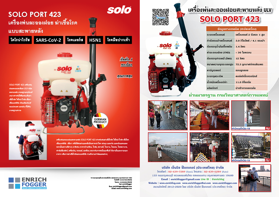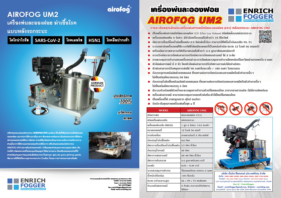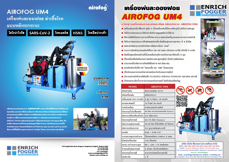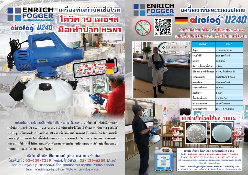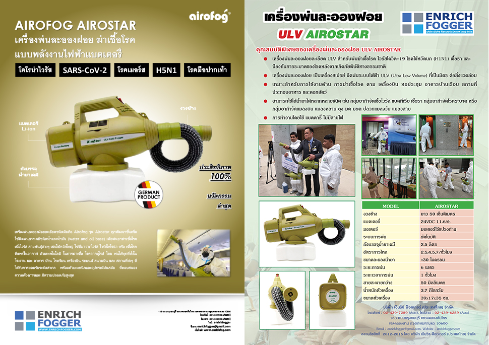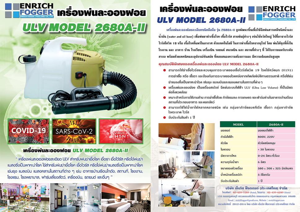 เอ็นริช ฟ็อกเกอร์ เราคือผู้นำเข้าเครื่องพ่นฆ่าเชื้อโควิด19 ศูนย์ขายส่งเครื่องพ่นกำจัดเชื้อไวรัส ยุงและแมลงทุกชนิดหลากหลายที่สุดในประเทศไทยโดยผู้ชำนาญการเฉพาะทางมากกว่า 30 ปี เครื่องพ่นของบริษัทผ่านการตรวจสอบและได้รับการรับรองจากกรมวิทยาศาสตร์การแพทย์ เครื่องพ่นทุกเครื่อง ผ่านการตรวจสอบคุณภาพ (QC) 100% ก่อนจัดส่ง และมีอะไหล่บริการ จัดจำหน่ายทั้งภาครัฐและภาคเอกชน กำจัดแมลงและฆ่าเชื้อโรค จัดส่งฟรีทั่วประเทศไทย